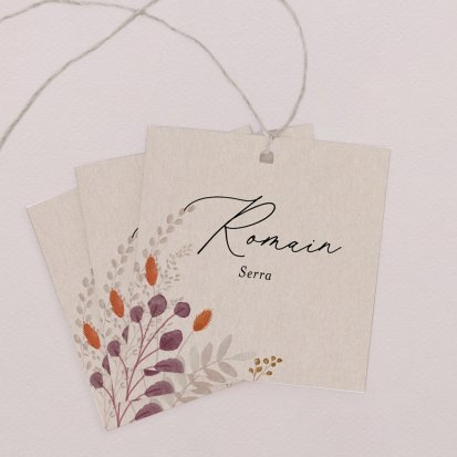 Indiquez joliment leur place à vos convives A poser ou placer sur un élément de décoration. Posez-le sur la serviette ou glissez-le sur un élément de décoration !