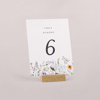 Nos cartes de numéro de table de mariage ne sont pas de simples bouts de papier avec un motif floral d'une belle couleur. Il s'agit d'un véritable élément du décor de votre mariage que vous pourrez poser dans un cadre en bois pour un mariage champêtre ou sur un support en métal pour un thème vintage. Comme pour le menu de mariage, le numéro de table en stock dans notre boutique en ligne est personnalisable pour suivre vos envies.