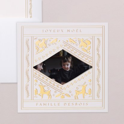 Touchez le cœur de ceux que vous aimez avec une carte de vœux personnalisée ! Comme chaque année, notre atelier a imaginé une collection de cartes de Noël et de Nouvelle année ornées d’adorables illustrations de saison et de dorures festives. Des créations qui partageront avec tendresse le portrait de votre petit lutin préféré, ou de toute votre tribu réunie !