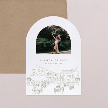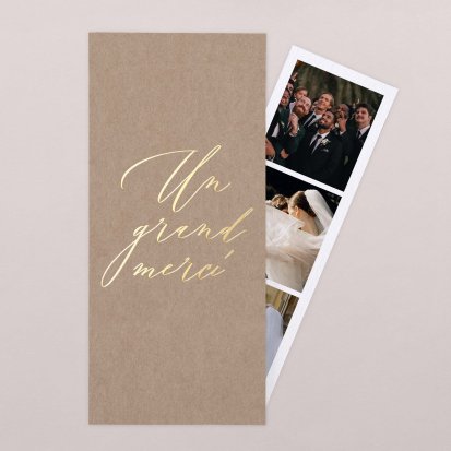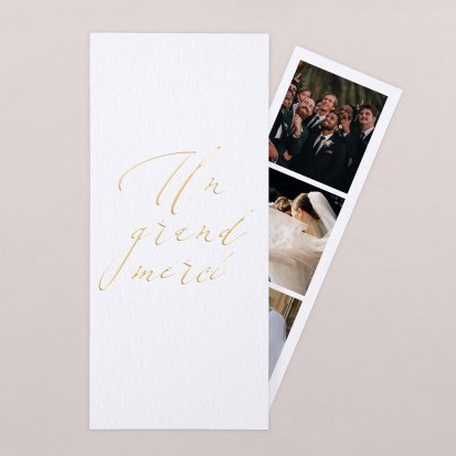 N’hésitez pas à sélectionner des photographies prises par un photographe professionnel durant le mariage, pour un rendu encore plus exceptionnel. Explorez notre collection de remerciements de mariage avec photo afin de vous inspirer.