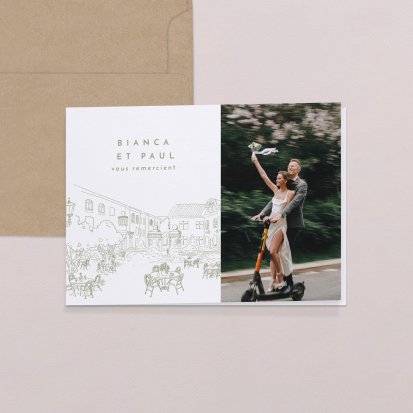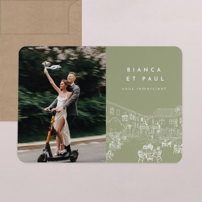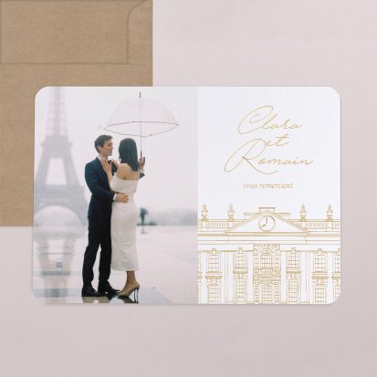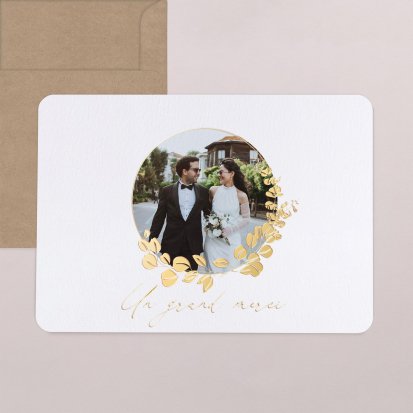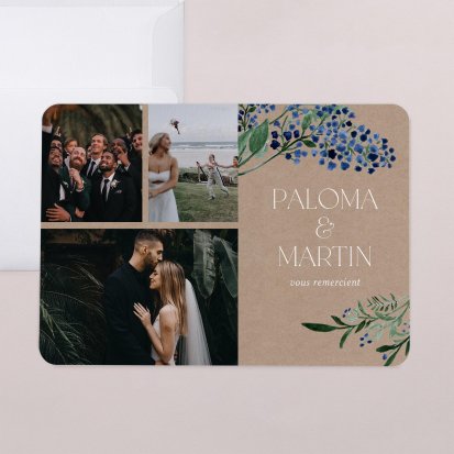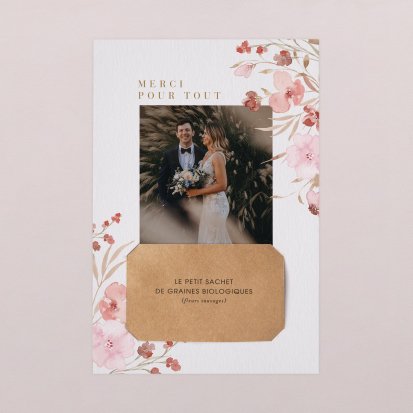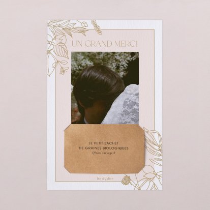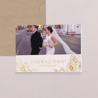 Concluez votre union sur une note d'émotion grâce à la carte de remerciement mariage.