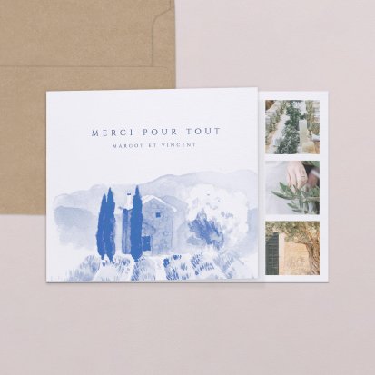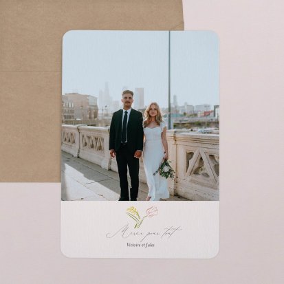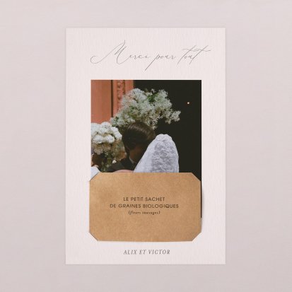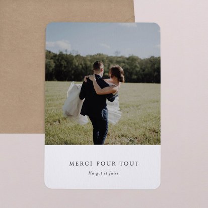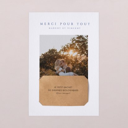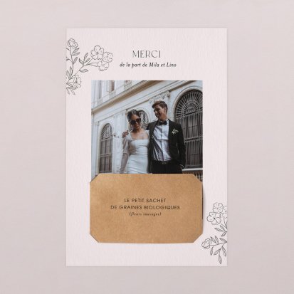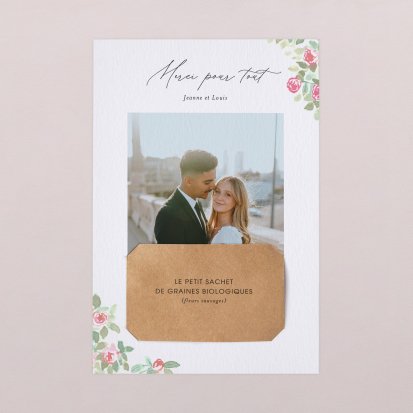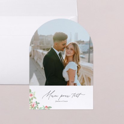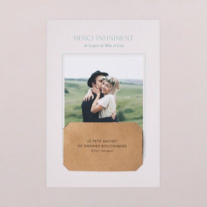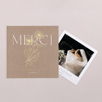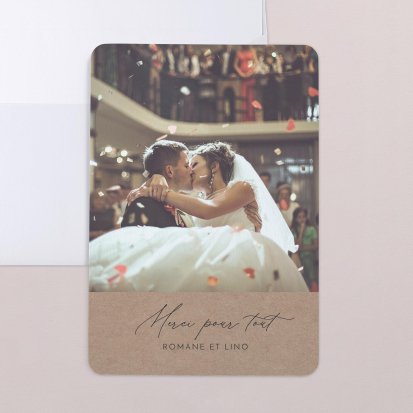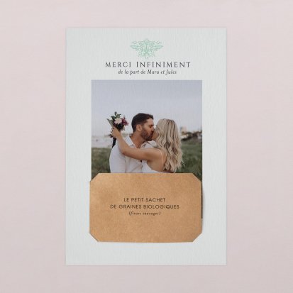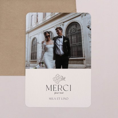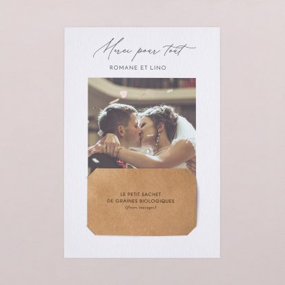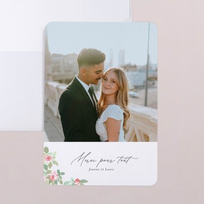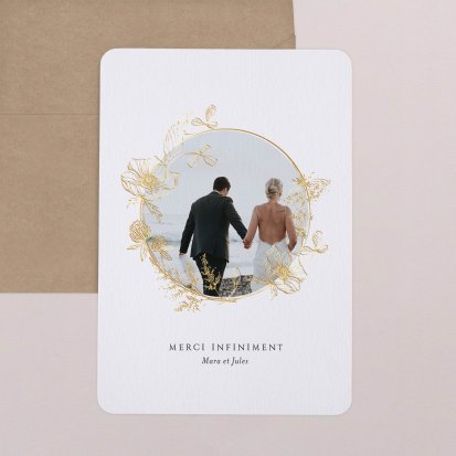 Concluez votre union sur une note d'émotion grâce à la carte de remerciement mariage.