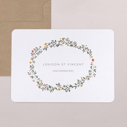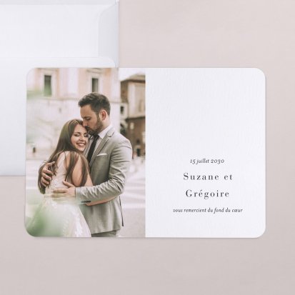 Concluez votre union sur une note d'émotion grâce à la carte de remerciement mariage.