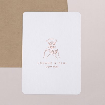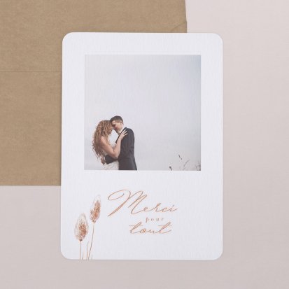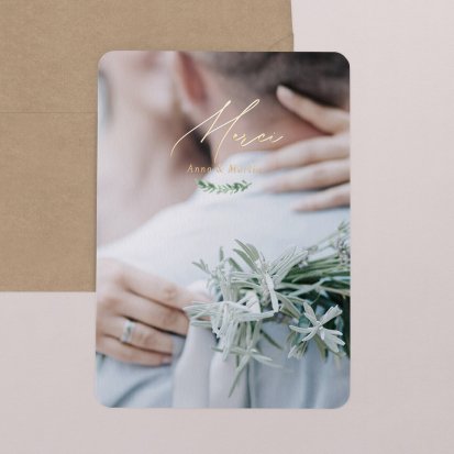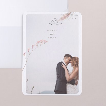 Concluez votre union sur une note d'émotion grâce à la carte de remerciement mariage.