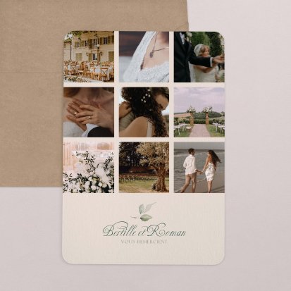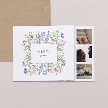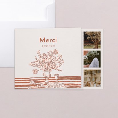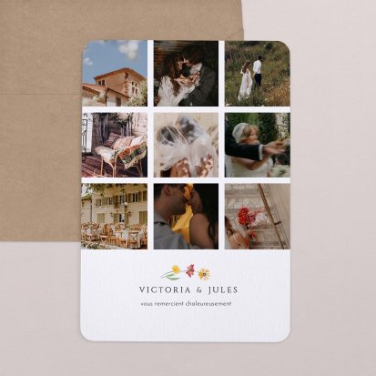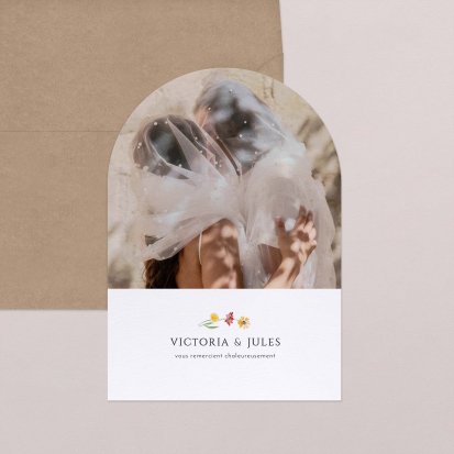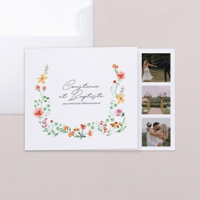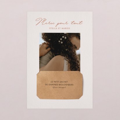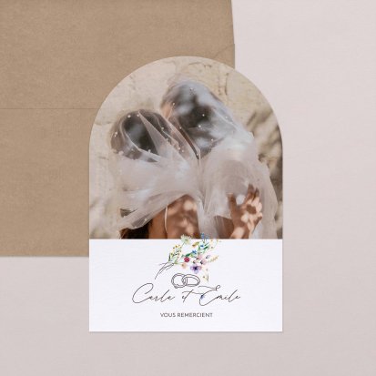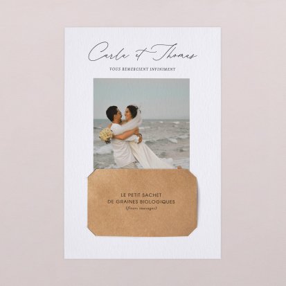 Concluez votre union sur une note d'émotion grâce à la carte de remerciement mariage.
