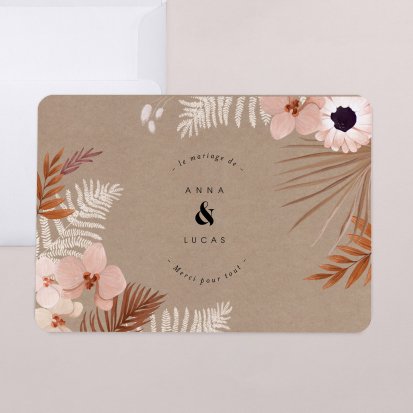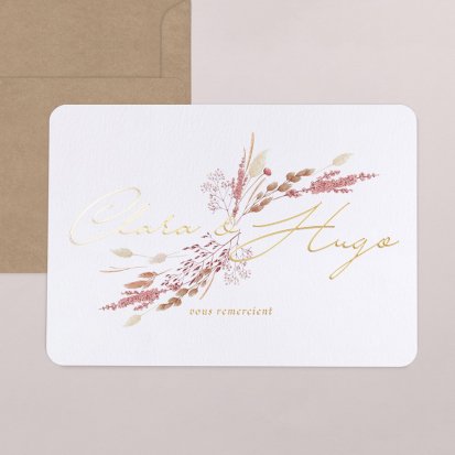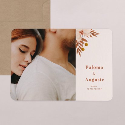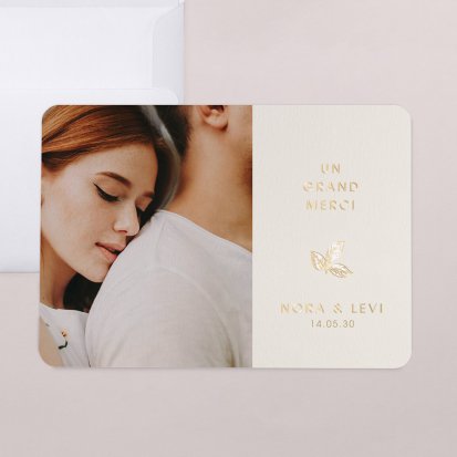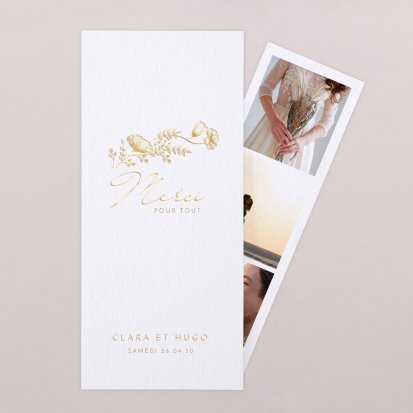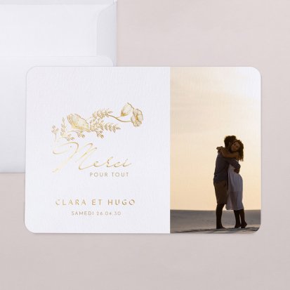 Concluez votre union sur une note d'émotion grâce à la carte de remerciement mariage.
