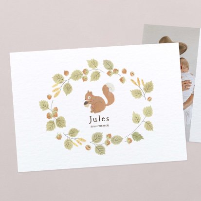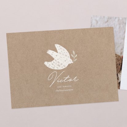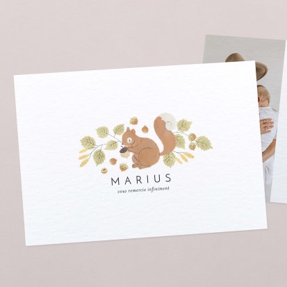 Si les remerciements avec photographie sont très appréciés, vous pouvez également opter pour une carte sans photo laissant la belle part à de jolies illustrations et d'élégantes typographies.