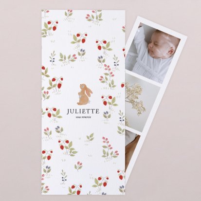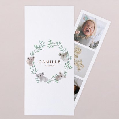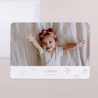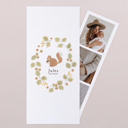 Pour partager les derniers clichés de votre enfant, choisissez une carte avec photographie. Collection de clichés de style photomaton, Polaroïd pour le côté vintage ou simple photographie : ces modèles personnalisés vous permettent de mettre en avant le joli minois de votre petit dernier.