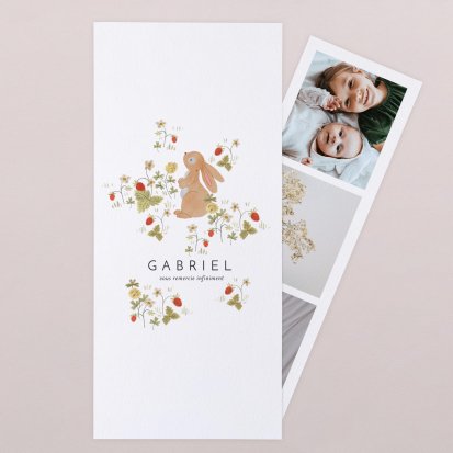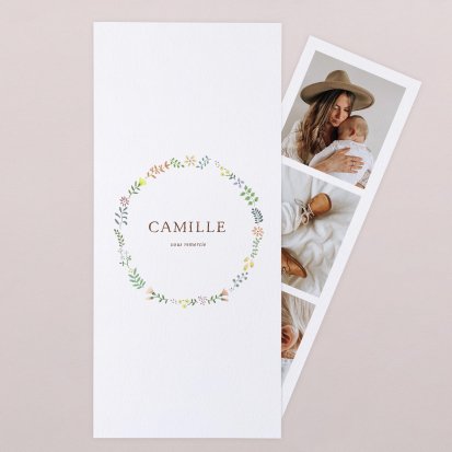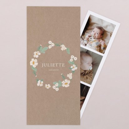 Pour plus de douceur, choisissez une carte aux coins arrondis ou double volet avec, glissé à l'intérieur, une petite surprise pour vos proches : un polaroïd aimanté ou un petit photomaton. C'est un cadeau idéal pour afficher la photo de votre enfant sur le réfrigérateur, ou être utilisé en marque page.