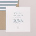 Inspiré par le charme intemporel des plages basques, le faire-part de naissance Biarritz célèbre, avec ses lignes élégantes bleues et blanches, la plus belle des naissances estivales.