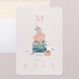 Sur le faire-part de naissance Entrechat, une jolie souris trône au sommet d'une pile de valises. Empreint de tendresse, ce modèle avec son adorable messager et ses couleurs pastel pleines de tendresse charmeront vos proches, dès l'ouverture de l'enveloppe.