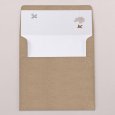 Ce faire part de naissance est une carte carrée pliée, dotée de coins arrondis pour plus de douceur. Il s'accompagne de deux étiquettes personnalisables, à lier avec un joli ruban (proposé en supplément).
