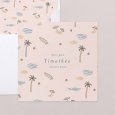 Avec ses motifs et ses couleurs estivales, le faire-part de naissance Aloha évoque les longues journées d'été et de douce farniente en bord de mer. Originale, cette création contera avec une immense douceur l'arrivée de votre bonheur.