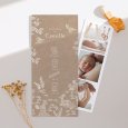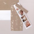 Ce faire-part de naissance se présente sous la forme d'une carte "marque-page", pliée par le milieu. À son ouverture, vos destinataires auront le plaisir de découvrir un photomaton de votre nouveau-né, apposé à côté de votre heureuse annonce.