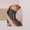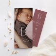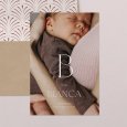 Sur le faire-part de naissance Daphné, l’initiale du prénom de votre enfant s’appose délicatement sur sa plus belle photographie. Un modèle minimaliste, qui partagera en toute simplicité le bonheur de cette nouvelle arrivée.