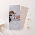 Ce faire-part de naissance se présente sous la forme d'une carte "marque-page", pliée par le milieu. À son ouverture, vos destinataires auront le plaisir de découvrir un photomaton de votre nouveau-né, apposé à côté de votre heureuse annonce.