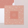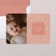 Sur ce faire-part de naissance Recital, des oiseaux blancs aux ailes déployées s'envolent dans un ciel aux tons pêche. Ce modèle gracieux et élégant, annoncera avec poésie l'arrivée de votre enfant.