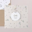 Une douce ribambelle de fleurs de myosotis bleues s'invitent sur le faire-part de naissance avec rayures Myosotis. Une création poétique pleine de douceur, parfaite pour annoncer avec tendresse la naissance de votre bébé au printemps ou en été.