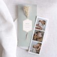 Deux perforations sur le devant de la carte permettent de glisser un brin de fleurs séchées (à choisir en supplément).