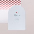 Délicats tons bleus ciel, cœur rouge illustré : le faire-part de naissance Petit cœur I dresse un tableau empreint de douceur pour partager votre bonheur.