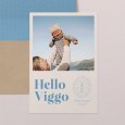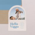 Sur le faire-part de naissance Colorama - Azur, typographie moderne bleu ciel et photographie de bébé forment une composition pleine de fraîcheur : parfaite pour partager votre immense bonheur.