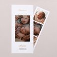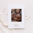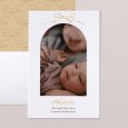 Ce faire-part de naissance se présente sous la forme d'une carte portrait pliée, avec une élégante découpe en forme d'arche sur sa couverture. Cette dernière mettra en valeur la photo de votre nouveau-né, imprimée sur une carte volante glissée à l'intérieur.