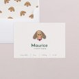Sur le faire-part de naissance Match & Patch I, un chiot brodé de couleur noisette ajoute une touche de charme supplémentaire à votre heureuse annonce. Alliant douceur et originalité, ce modèle épuré est idéal pour célébrer l’arrivée de votre adorable bébé.