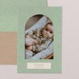 Avec sa découpe arrondie en forme d'arche, ce faire-part de naissance présente une silhouette douce et contemporaine. Il est à personnaliser des deux côtés avec votre heureuse nouvelle.