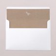 Ce faire-part se présente sous la forme d'une carte au format portrait, composée d'un volet central et de deux volets latéraux mobiles. À leur ouverture, ces derniers dévoilent les détails clés de la naissance de votre enfant. Ils peuvent être maintenus fermés grâce à un joli ruban (au choix et en supplément).
