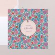 Le faire-part de naissance Valentina s'habille de motifs fleuris, graphiques et vibrants, parfaits pour annoncer une naissance de printemps. - couleur : rose, rouge, violet, vert, bleu, beige - thème : original, fleurs, champêtre, coloré - illustrations : fleurs