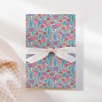 Ce faire-part se présente sous la forme d'une carte au format portrait, composée d'un volet central et de deux volets latéraux mobiles. À leur ouverture, ces derniers dévoilent les détails clés de la naissance de votre enfant. Ils peuvent être maintenus fermés grâce à un joli ruban (au choix et en supplément).