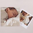 Cette carte de remerciements s'accompagne d'un cadeau glissé à l'intérieur : une photo de votre nouveau-né, inspirée du format polaroid (non magnétisé), qu'ils pourront conserver en souvenir, afficher selon leur inspiration, utiliser comme marque-page... .