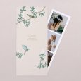 Sur le faire-part Passereaux, d’adorables petits oiseaux délivrent l’heureuse nouvelle : la communion de votre enfant va bientôt être célébrée ! Une fresque aquarelle pleine de fraîcheur et de poésie, parfaite pour célébrer ce nouvel évènement de vie.