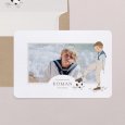 Le faire-part Ballon d’or dresse un doux portrait de communion de votre junior fan de foot. Tendrement illustrée et personnalisée à son image, cette création place votre garçon au centre de toutes les attentions.