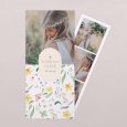 Le faire-part de communion Lilly Rose dresse un tableau de fleurs colorées, frais et printanier. Jonquilles, violettes, pissenlits et autres fleurs s'invitent sur cette création, idéale pour annoncer une célébration au printemps ou en été.