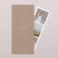 Sur un fond kraft élégant et sobre, le faire-part de communion Domitille est décoré d’une symbolique croix blanche, présageant la cérémonie à venir. Ce modèle vous permettra de personnaliser votre invitation avec la plus belle photo de votre enfant.