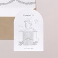 Sur le faire-part de mariage Monceau, une majestueuse grille parée d’ornements végétaux se dessine. Une création chic un brin bucolique, prête à révéler les détails clés d’un mariage à ne pas manquer.