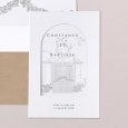 Ce faire-part se présente sous la forme d'une carte double-volet, à personnaliser avec les détails de votre mariage.