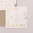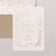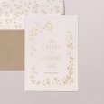Mise en valeur par de délicats motifs végétaux et un lettrage doré, votre annonce est au centre des attentions sur le faire-part de mariage Bizet. Un modèle un brin vintage très raffiné, qui présage la plus belle des journées.