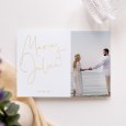 Vos prénoms sont au centre de l’attention sur le faire-part Pure Gold. Élégante calligraphie ennoblie de finitions dorées, photographie des futurs mariés : ce modèle imaginé en ode à votre amour annoncera tendrement votre beau jour.