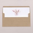 Les futurs mariés en quête d'une papeterie champêtre seront séduits par la délicatesse et poésie du faire-part Ambrosia III. Calligraphie dorée et ornements de fleurs séchées créent un tableau de charme, annonciateur de votre beau jour à venir.