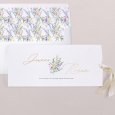 Ce faire-part se présente sous la forme d'une pochette contenant deux cartes rectangulaires. Pour une touche d'élégance supplémentaire, liez vos cartes avec un joli ruban (au choix et en supplément).