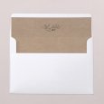 Ce modèle comprend 3 éléments : un faire-part, une carte glissée dans sa pochette interne et une étiquette à attacher sur le devant. Des perforations sont prévues sur le faire-part pour y glisser un joli ruban (au choix et en supplément), agrémenté de l'étiquette.