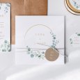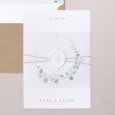 Ce modèle comprend 3 éléments : un faire-part, une carte glissée dans sa pochette interne et une étiquette à attacher sur le devant.