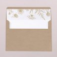 Sur le faire-part de mariage Carmen, une superbe couronne de fleurs esquissée en or encadre les prénoms des jeunes mariés. Une composition raffinée, parfaite pour conter un mariage champêtre, chic ou bohème.