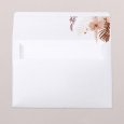 Sur le faire-part de mariage Copper Flowers, une élégante couronne de fleurs séchées et d’orchidées encadre vos prénoms. Avec ses douces tonalités rosées, son lettrage cuivré et son papier couleur kraft, cette composition bohème enchantera tous vos invités.