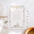 L’iconique lieu de votre union est au centre des attentions sur le faire-part de mariage Baptistine. Fleurs et fruits s’apposent autour de votre annonce sur cette création colorée, idéale pour un mariage champêtre, en toute simplicité.