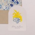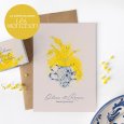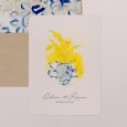 De superbes mimosas aux tons ensoleillés s’invitent sur le faire-part de mariage Mimosas. Une toile peinte avec délicatesse, évoquant le charme d’une douce évasion grecque en plein été.