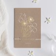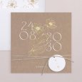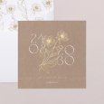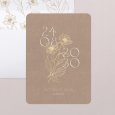 La date de votre union est au centre des attentions sur le faire-part de mariage Ophelia. Papier d’aspect kraft et illustration fleurie sublimée d’or s’invitent sur ce modèle, parfait pour ceux qui rêvent d’un “oui” au thème champêtre, nature ou un brin vintage.