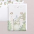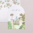 En forme d'alcôve, ce faire-part se personnalise au recto et au verso avec tous les détails de votre mariage.